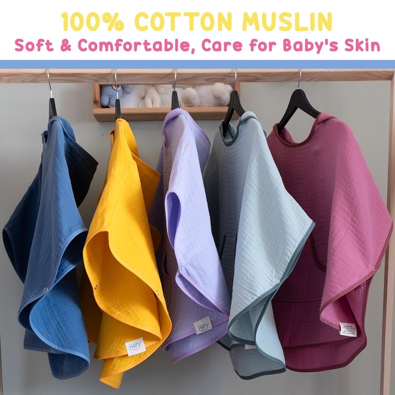 - VERSATILE COMFORT | This 4-layer cotton muslin baby towel poncho serves multiple purposes, functioning as a cozy blanket, as well as a practical choice for charming toddler robe, cozy kids ponchos.