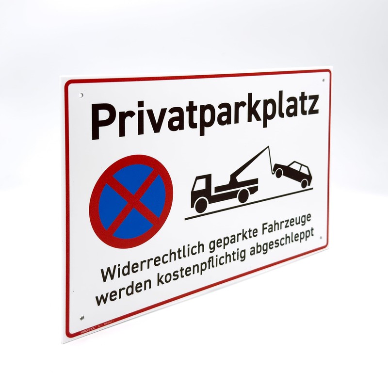 - Areas of application: parking ban zone, no stop, private parking lot with parking barrier, in addition to parking space marking, keep driveway / exit free, private property, commercial, etc.