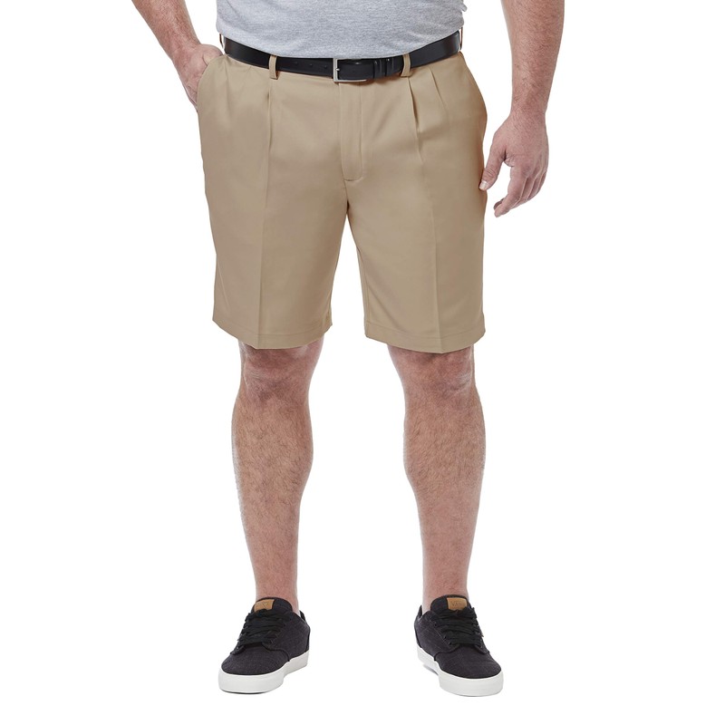Haggar Men's Big & Tall Cool 18 Pro Pleat Front Short, Khaki, 44