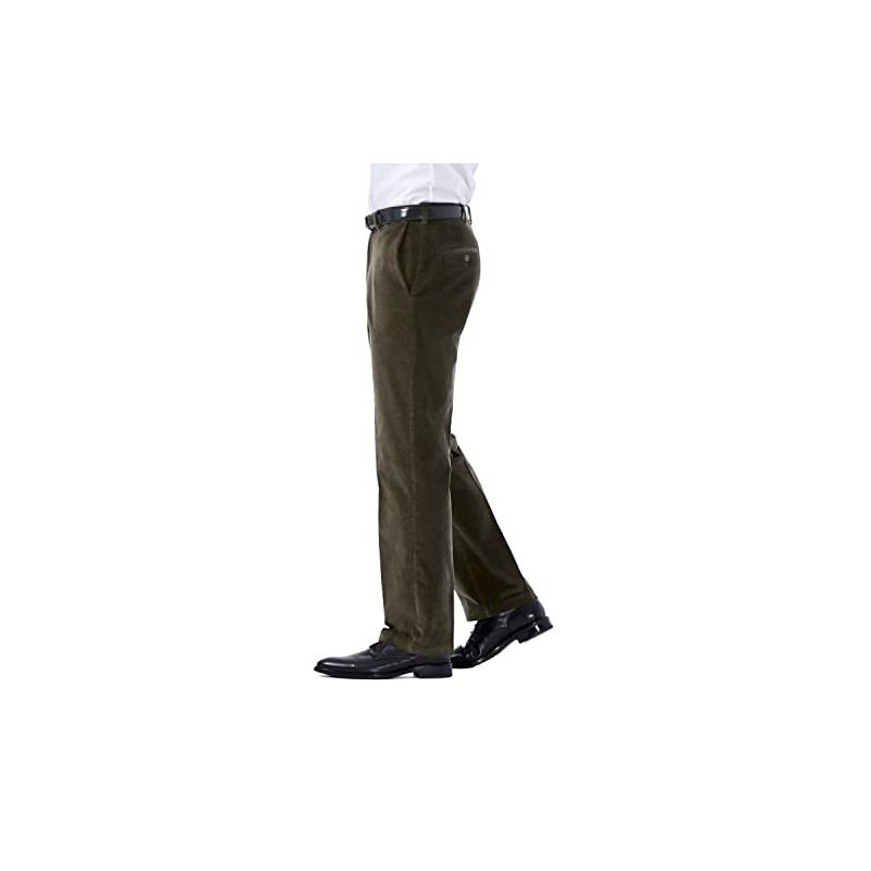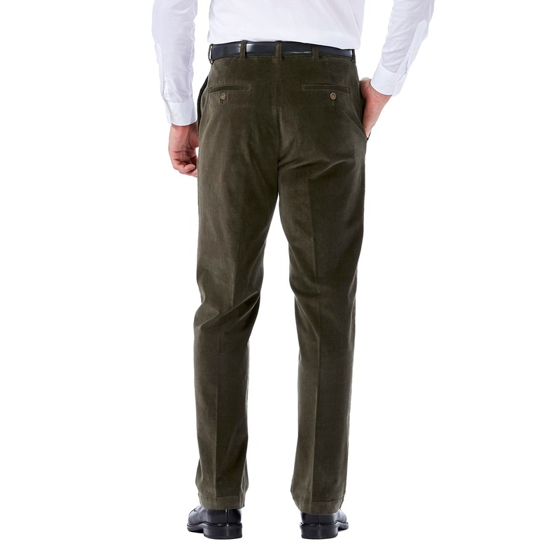 Haggar mens Stretch Corduroy Expandable Waist Classic Fit Flat Front Casual Pants, Military Green, 34W x 29L US