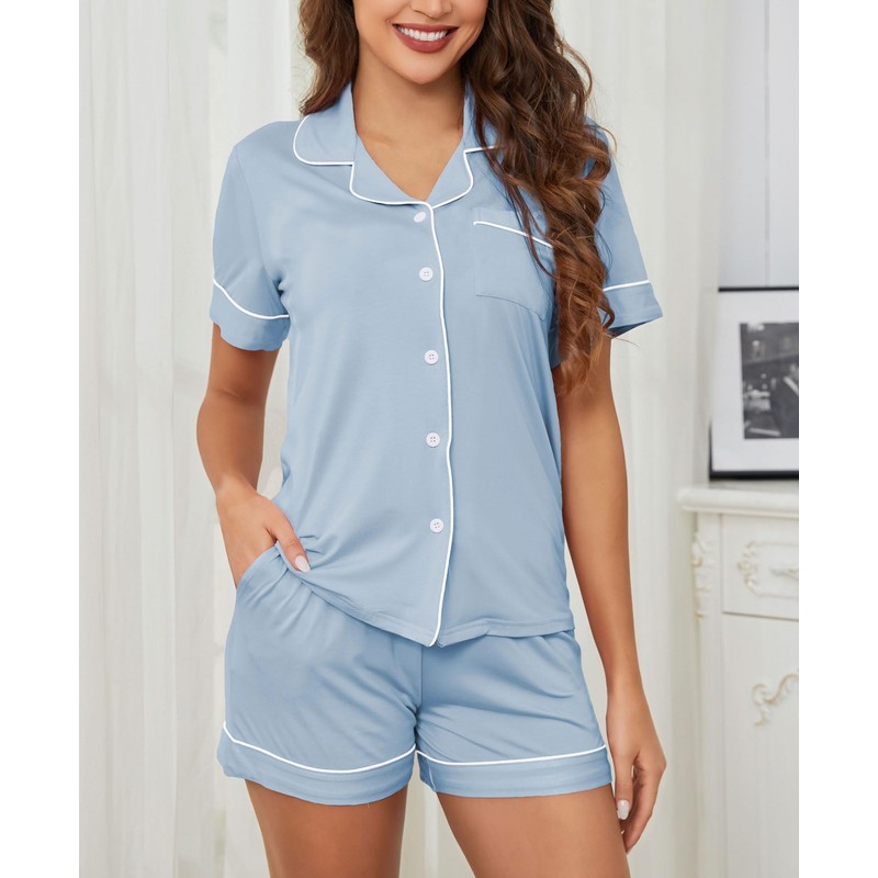 - 【Features 】 This pajama sets for women 2 piece with button down shirt, one chest pocket, notch collar, and contrast piping trim. The pj shorts feature an adjustable elasticated waistband. Classic button pajama sleepwear style makes you relaxing and comfort in your leisure time.