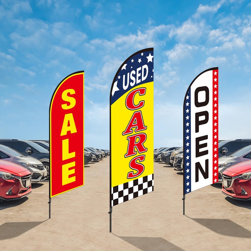 - Comprehensive Flag Set: the package includes 3 complete sets of used cars feather flag banners; Each set is comprehensive with 6 section poles, including a ground stake that is easy to assemble and disassemble, ensuring an instant setup at a moment notice