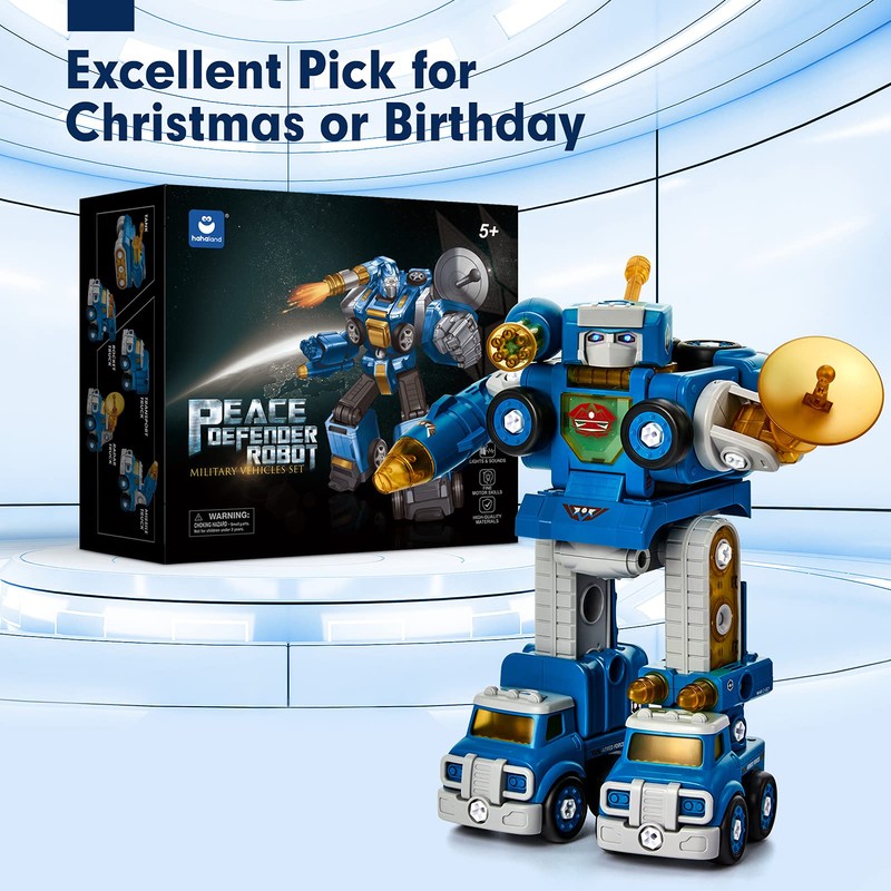 - 5 Vehicles in 1 Peace Defender Robot: Get 5 take-apart vehicles that can be assembled into a big robot or separate cars. With easy-to-follow instructions, these kids toys promote solo or collaborative play while developing teamwork and patience skills. Ideal Christmas gifts for kids