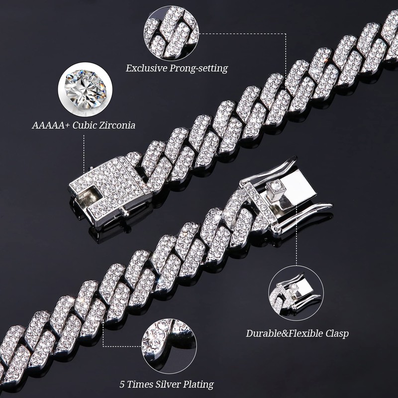 - Iced Out Cuban Chain Design: Our Luxury Fashion Necklace Chain Is Designed For Rappers, Hip-Hop Lovers, Artists, Men And Women Persuing Fashion. Cuban Necklaces Has Excellent Touch Feeling And Shining Surface, Simple And Stylish.High Polished Surface Adds Extra Gloss To Its Beauty.Shining AAAAA+ Cubic Zirconia Decorate The Whole Necklace,Which Color Almost Identical To Diamonds, Acting As A Statement Of Elegance And Good Taste.