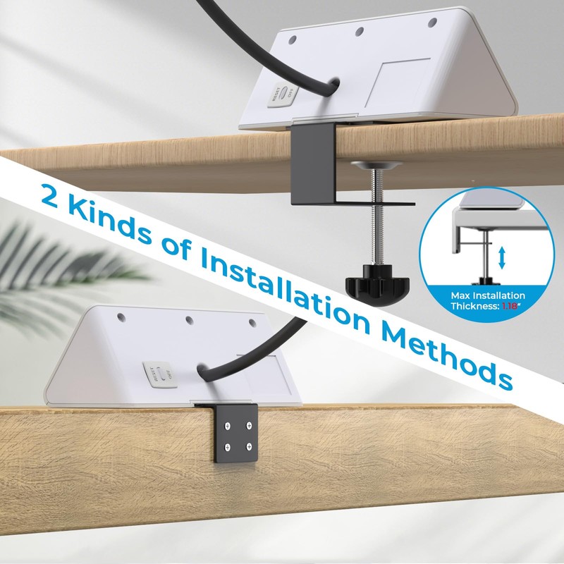 Fácil de instalar: viene con tornillos de instalación y abrazadera de montaje. Esta toma de corriente se adapta perfectamente a tu mesita de noche/mesa de escritura/computadora de computadora o mesa auxiliar.