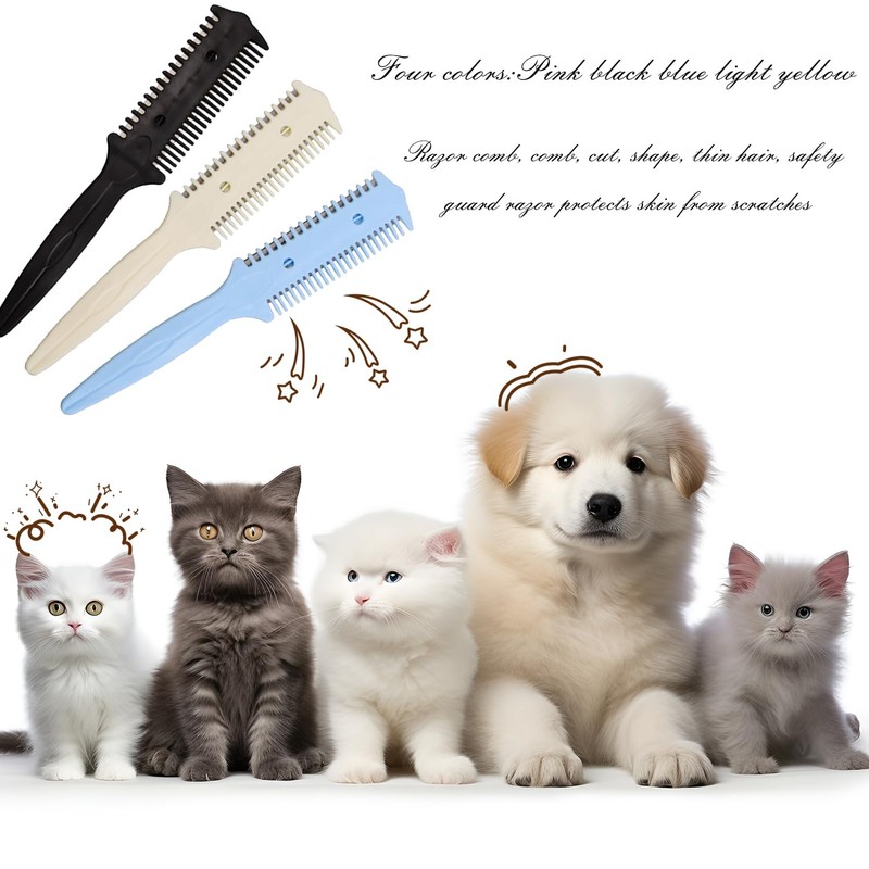 - Packaging:The product contains 3 pet razor combs with random colors which is enough for you to use or replace. You can even give one of them to your family or friends with small pets around you.