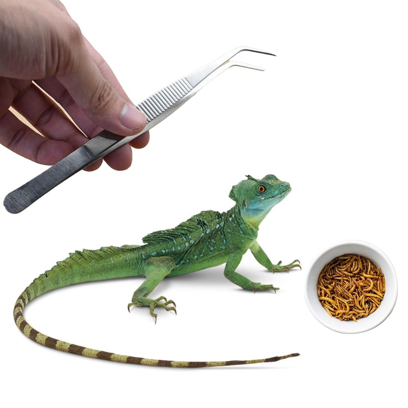 HAICN 3Pcs Reptile Bowl with Stainless Steel Tweezers Ceramic Bowl Extra Long Tweezers Set Reptile Feeder Premium Aquarium Tools for Tortoise Lizard