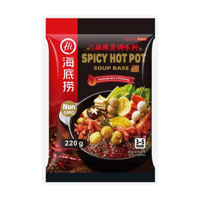 - PACK OF 3 - This is a bundle of 3 pack of Haidilao Spicy Hot Pot Soup Base 220g. Each pack can serve for 3-5 persons size hot pot.