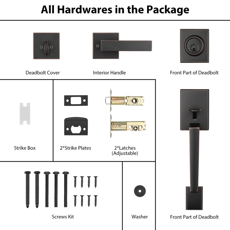 - 【Front Door Lock Set Matches】Haidms entry door lock set is including deadbolt, 2 door handle, 2 door lever, adjustable latch bolt sets and 3 keys. The lock set includes all the necessary hardware components you need for an easy installation, including an installation instruction.