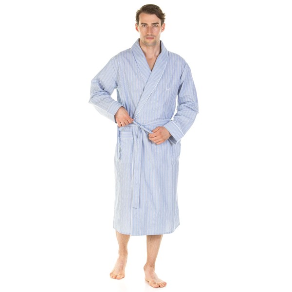 Haigman 100% Cotton Dressing Gown 7396 Light Blue Stripe Large