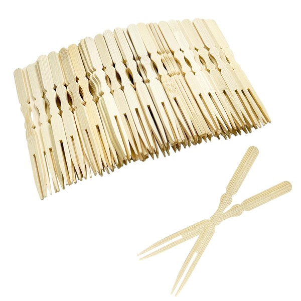 HAIKING Gourd Forks, 100 PCS Mini Bamboo Two Prongs Cocktail Forks for Party, Banquet, Buffet (0.7 x 10cm/0.27 x 3.93in)