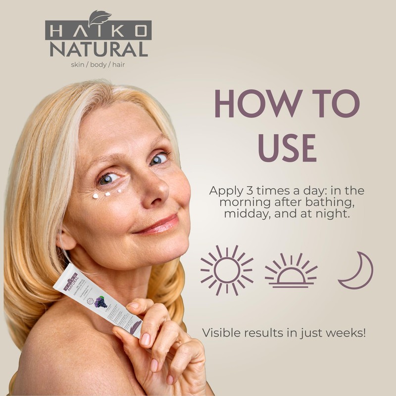Haiko Natural | Eye Contour Gel | Helps Reduce Puffiness and Dark Circles | With Grape Extract and Collagen | 1.0 FL.OZ / 30g | Paraben Free