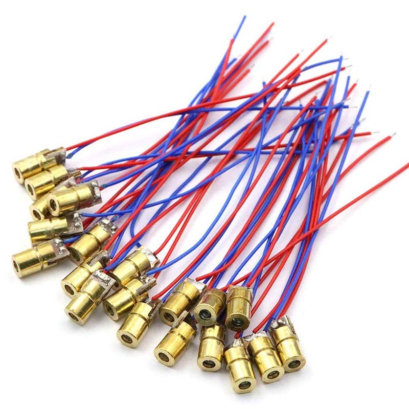 Hailege 20pcs 5V 650nm 5mW Red Dot Laser Head Red Laser Diode Laser Tube with Leads Head Outer Diameter 6mm