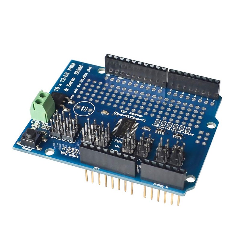 - PCA9685 Servo Shield PCA9685 16 Channel 12-bit PWM Servo Driver Shield I2C Interface.