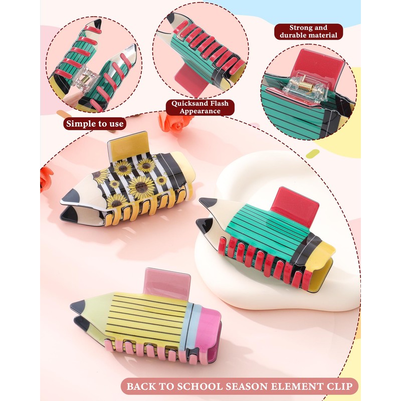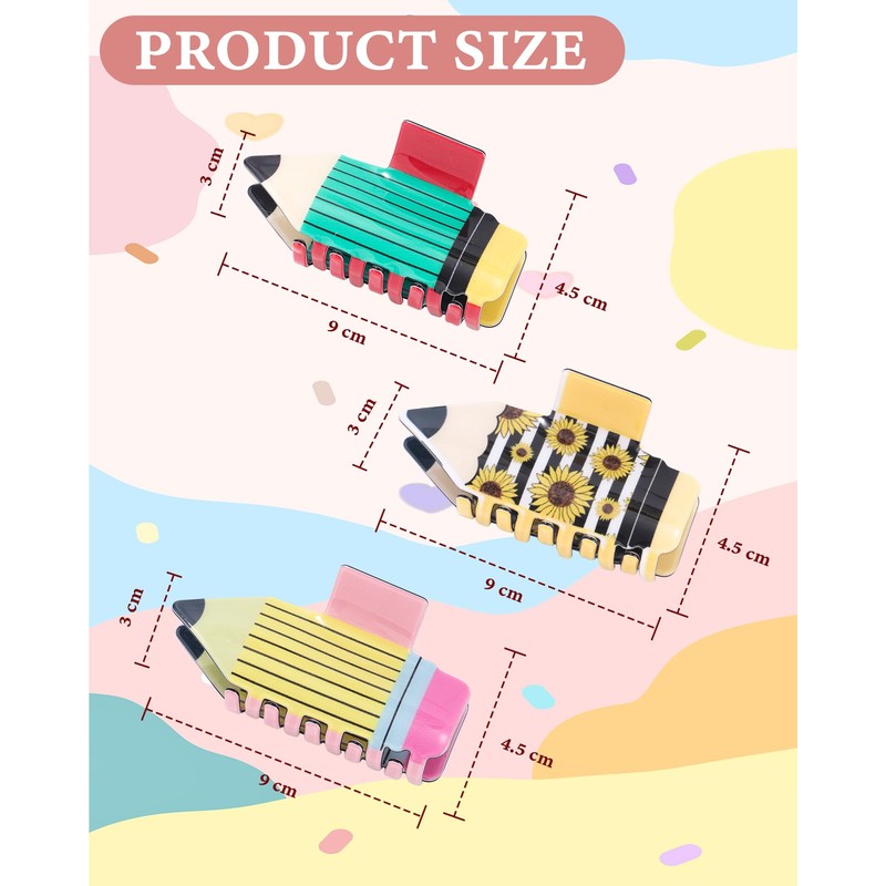 HAIMEIKANG 3Pcs Pencil Hair Claw Clips Back to School Teacher Clips