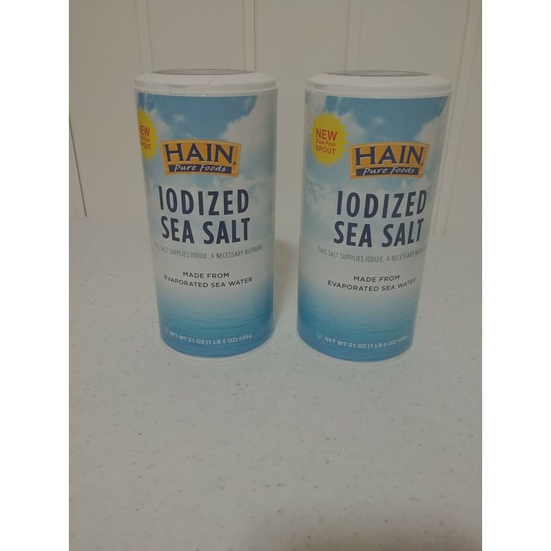2- Iodized sea salt 21oz each . Sea salt are sourced and produced from pristine ocean waters and brought to your table for all your cooking needs. Can be used as the perfect addition to your every day beef, poltry, seafood and vegetable dishes. Sea salt is a natural product. Ingredients: sea salt , tricalcium phosphate (free flowing agent) dextrose,potassium iodide. Condition is New.