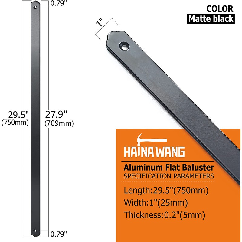 HAINA Wang AAMA-2604 Standard Deck Balusters Aluminum for Deck Railing Porch (Straight/50PC, Black-29.5")