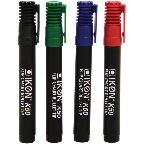 Hainenko K50-WLT4 Value Bullet Tip Flipchart Marker - Assorted Colour (Pack of 4)