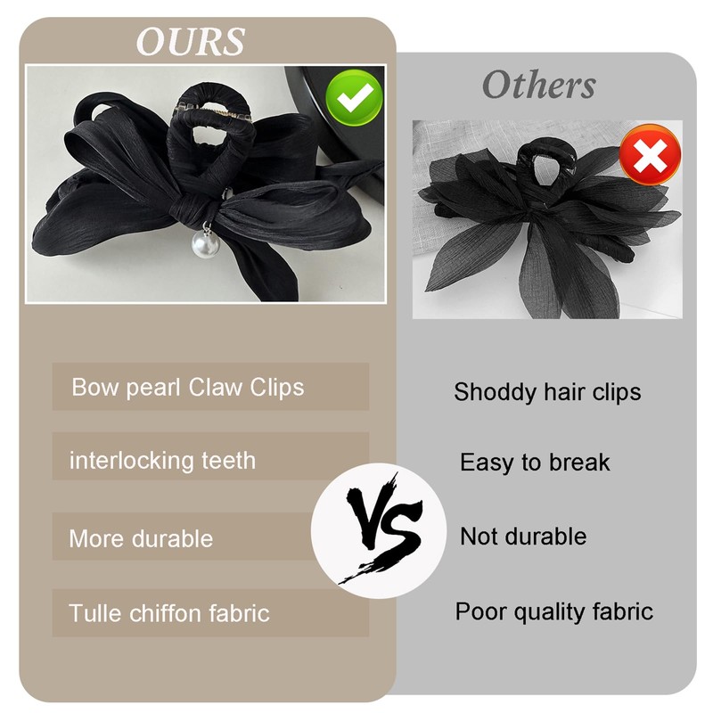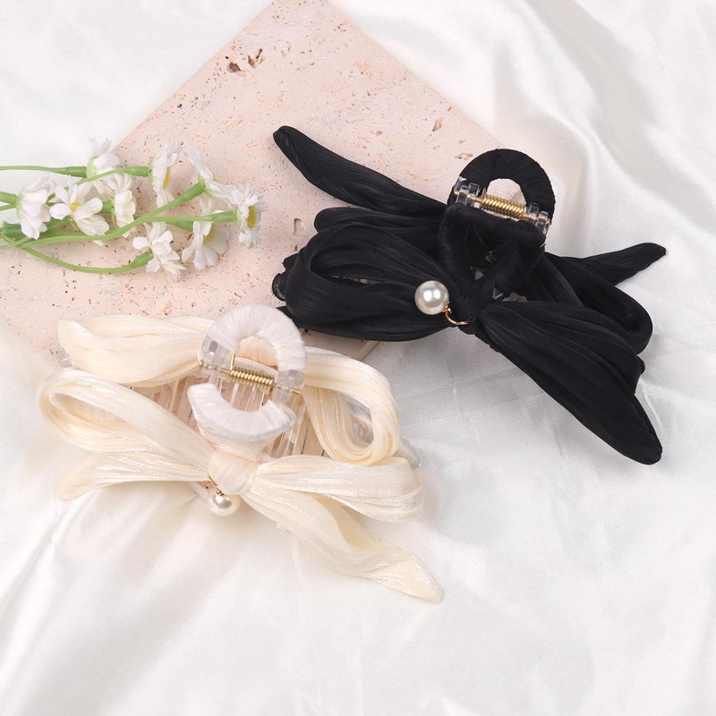 - 【French Bow Pearl Hair Accessories Design】The acrylic bows for hair black bow hair claws clips white hair barrette crab ladies fashion hair accessories hairpin claw jaw for woman is non-slip, can hold your hair firmly without damaging your scalp and no matter your hair type is thick, thin, curly, or straight hair will definitely fit our product.Suitable for elegant and delicate female friends.