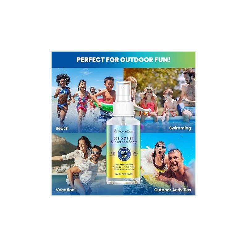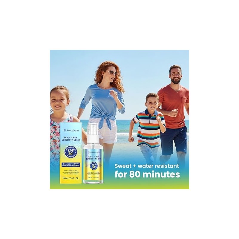 Hair and Scalp Sunscreen Spray SPF 30+: UV Protection, 80-Min Water-Resistant, Non-Greasy - Scalp Sunscreen Mist for Beach, Pool & Outdoor Activities - 100ml