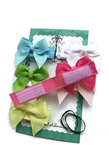 Sold since 2004, these cute clips can be worn in a variety of ways. Simply squeeze the bow into your baby's fine hair or use a tiny rubber band to hold a section in place before squeezing the bow over it. The bow will grasp both the hair and band securely.