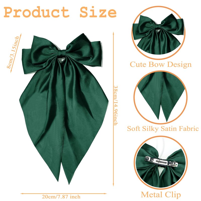 Hair Bows Silky Satin Bows Oversized Long Tail Hair Bow Clips Barrettes Big Bowknot Hair Accessories Trendy Stuff for Women Girl (Dark Red & Dark Green)