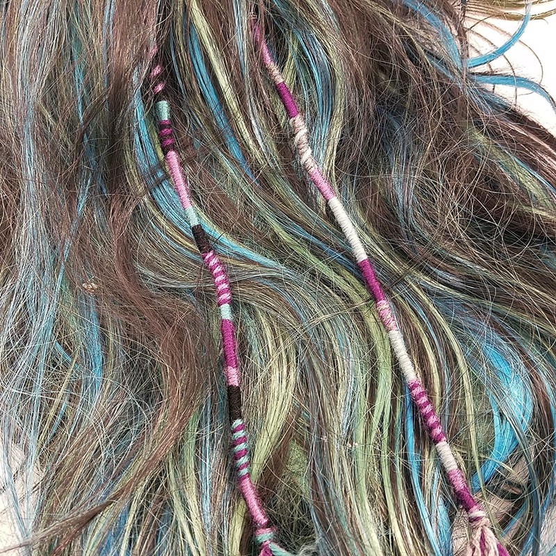 - Make 10 colourful, long hair hair wraps with beads and charms