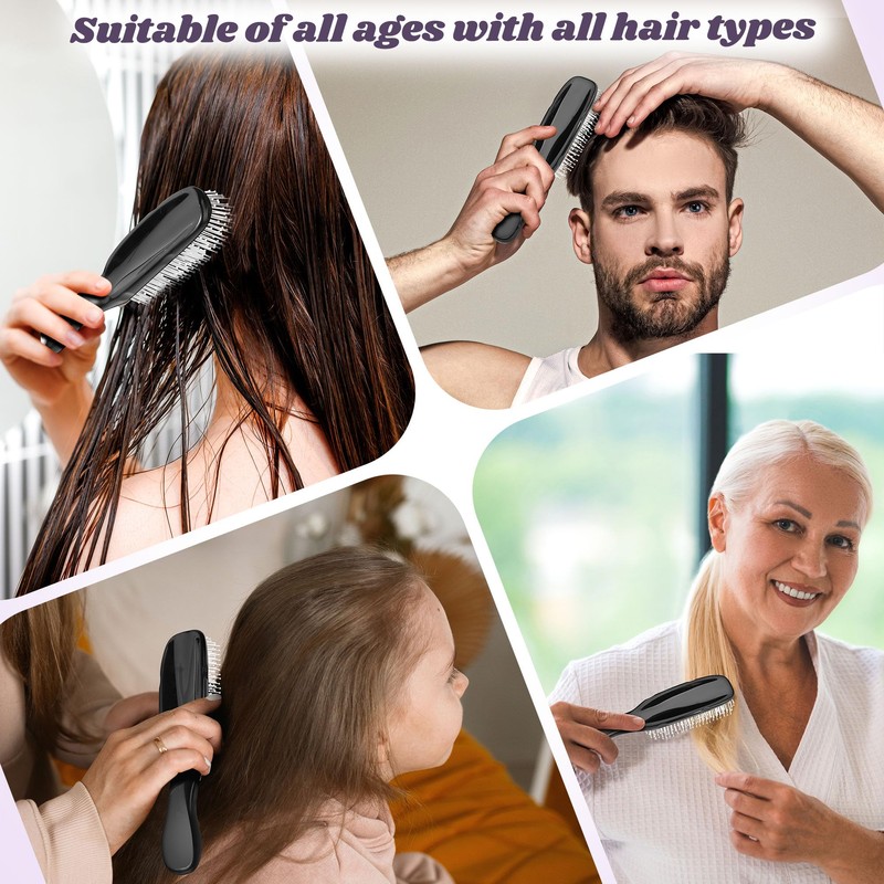 Hair Brush, Wet Dry Datangling Hair Brushes for Women Men with Frizzy Curly Thick Hair, Double Length Bristles for Deep Brush and Massage Scalp, Lightweight, Travel Hairbrushes (Black)