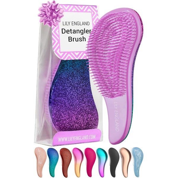 Hair Brush without Pulling, The Perfect Detangler Brush for Curls, Straight, Thick, Thin Hair, Hair Brush for Children and Women - Lily England Detangling Brush for Long Hair and Short (Pink/Purple)
