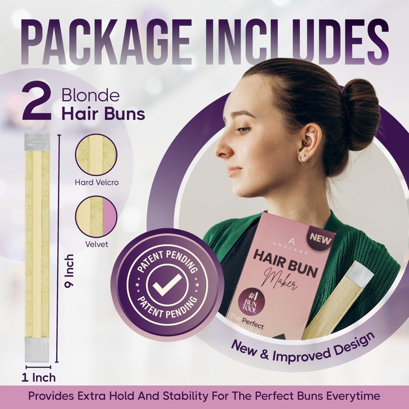 Hair Bun Maker and Accessories for Women and Kids - Easy Clip for Long Hair - French Twist Tool - Sock and Ballet Bun Holder (Blonde, Pack of 2)