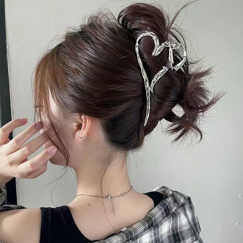 Hair Claw Clips Sliver Metal Large Heart Shaped Hair Clips for Thick or Thin Hair Strong Hold Claw Clips Elegant Non Slips Hair Jaw for Women Y2k Hair Accessories