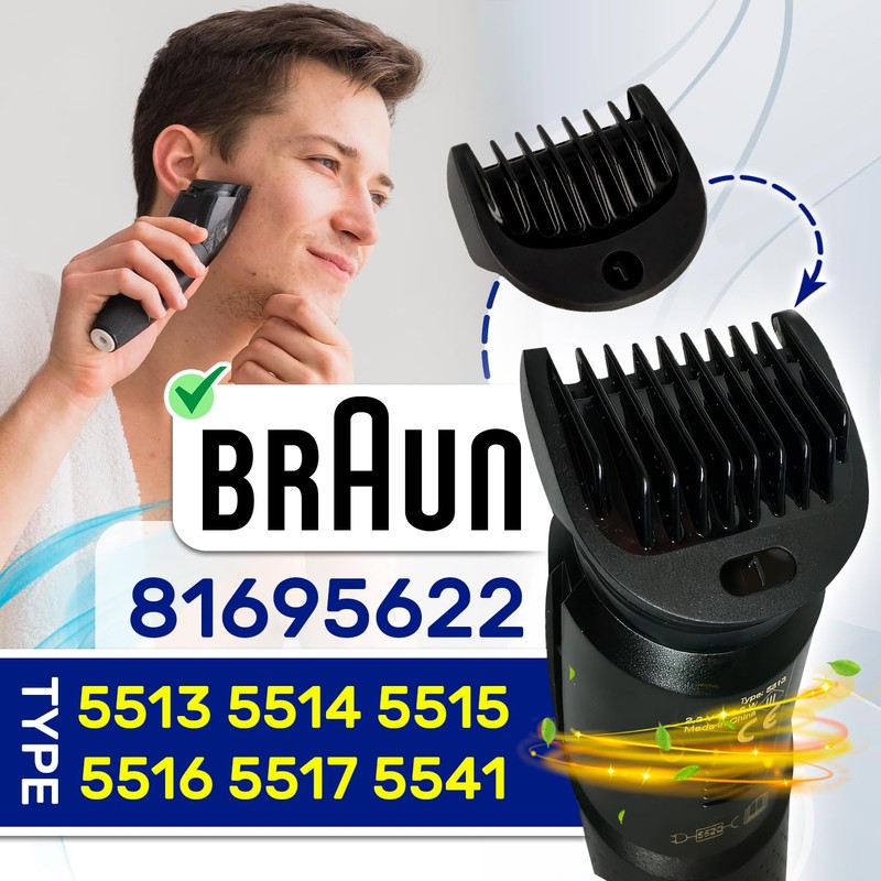 - COMPATIBILITY - The hair clipper attachment for the beard trimmer men has the original code 81695622 and fits for Braun Type 5513, 5514, 5515, 5516, 5517, 5541.