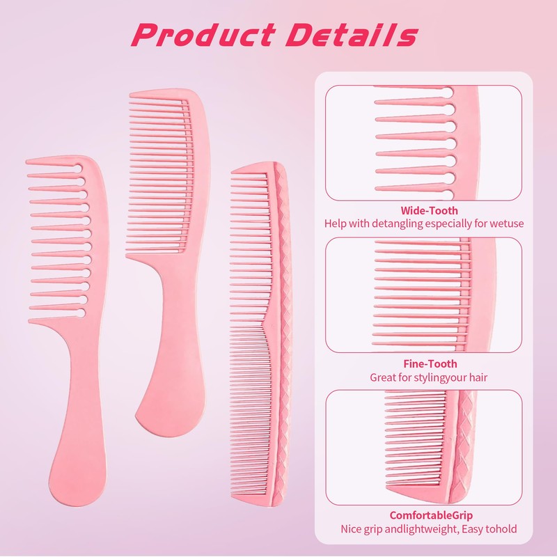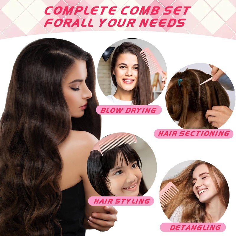 - 【Wide Range of Use】The comb set for women is suitable for all hair types and hairstyles such as a Wide tooth comb for women with curly/ thick/ wet hair, Fine tooth comb for thin medium, and volume hair, ponytail hair, and beard maintenance, rat tail combs for women comb for hair parting/ styling/ cutting.