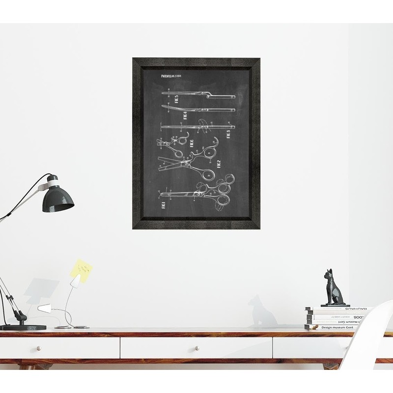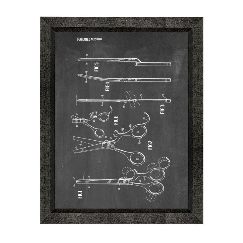Hair Cutting Scissors Patent Art Chalkboard Print in a Beveled Black Wood Fra...