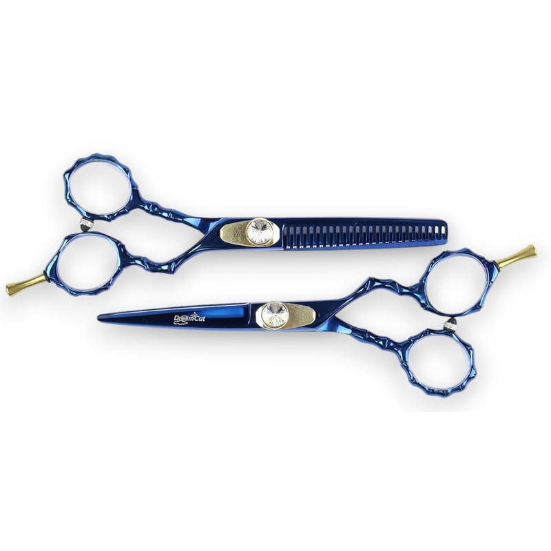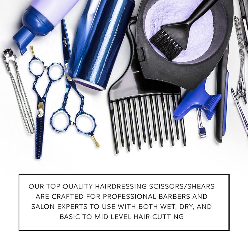 Hair Cutting Scissors, Titanium Coated 5.5" Professional Barber Hairdressing Scissors & 5.5" Thinning Shears (Blue/GOLD) 440C Japanese Stainless Steel Set for Personal/Professional use by DreamCut
