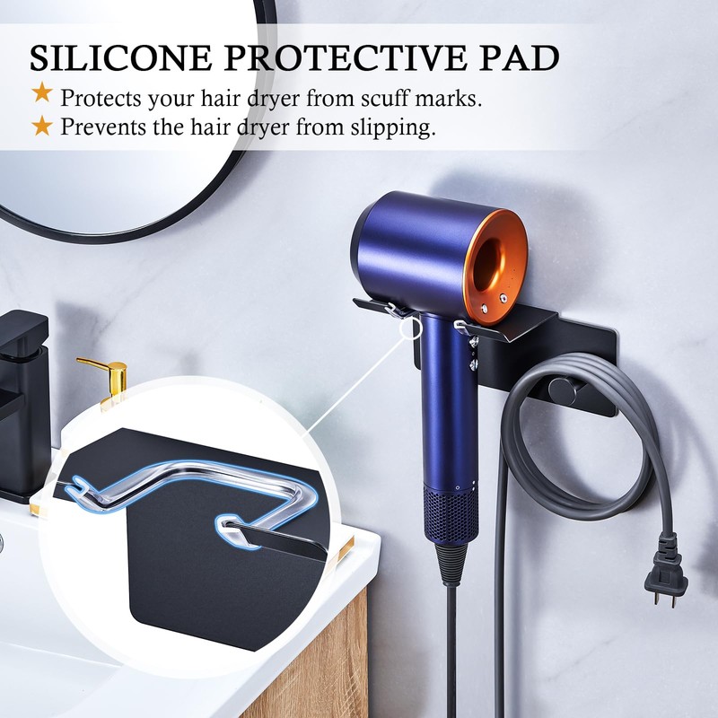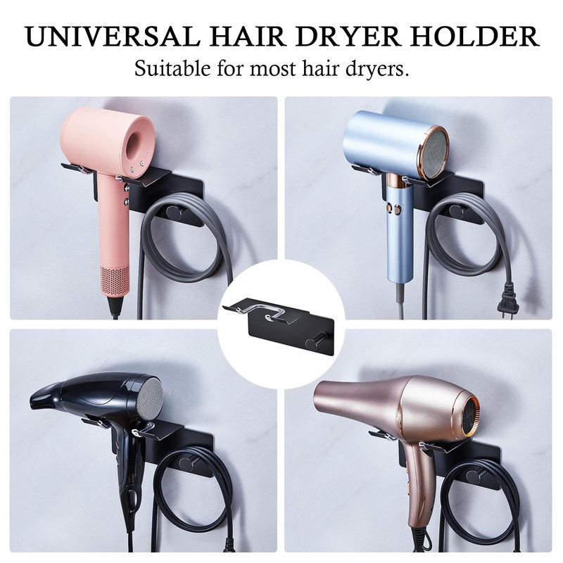 - 【Wide Applicability】: The blow dryer holder for wall mount is suitable for most hair dryers. Whether it's a large professional model or a compact one, this hair tool organizer can hold them all, making it a versatile option for different users. With careful design, it snugly fits hair tools of various shapes and sizes, eliminating concerns about instability during storage.