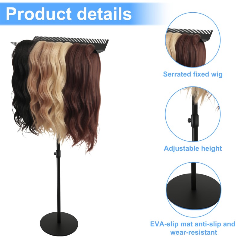 - Wig storage rack: This secure hair braiding tools stabilizes extensions with adjustable telescopic rods 24.26 inches high Low 11.61 inches. The weighted base design reduces tipping risk during wig retrieval.