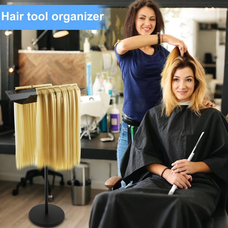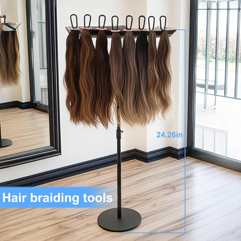 - Braiding rack: This hair racks for braiders standing organizes clip in hair extensions, bangs, I-tip hair extensions, halo hair extension, tape in hair extensions, helping manage and store your hair with reduced tangling.