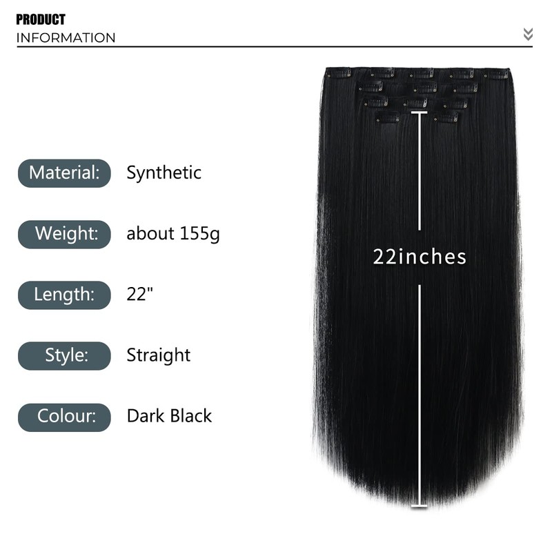 - Hair Material : Clips for hair extension product uses synthetic material,The weight is (5-5.2) OZ, suitable for ladies and girls who have less hair and need to increase hair volume.If you want to add your hair length, please buy 2 sets.