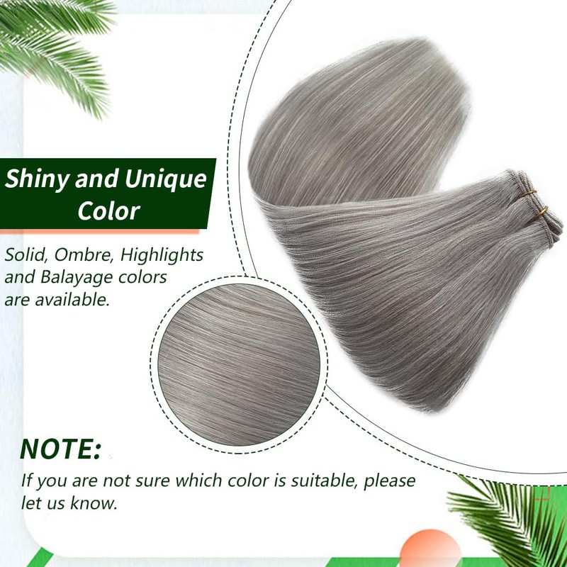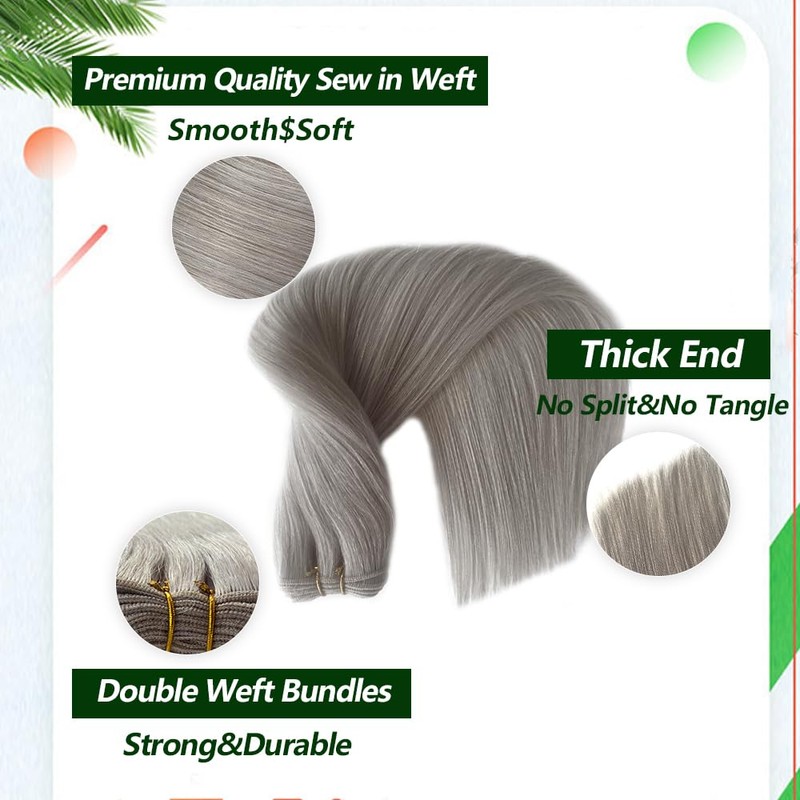Hair Extensions Real Human Hair Sew in Double Weft Weave Bundles Straight Platinum Sliver 14 Inch Hand Tied Weft Hair Extensions for Women Real Hair