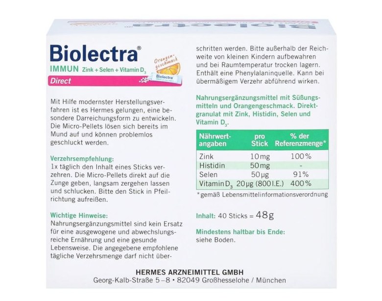 Hair Mess Biolectra Immune Zinc Selenium Vitamin D3 Orange Flavor 40 sachets x 3, 48g, 3 units / 헤어메스 바이오렉트라 이뮨 아연 셀레늄 비타민D3 오렌지맛 40포X3, 48g, 3개