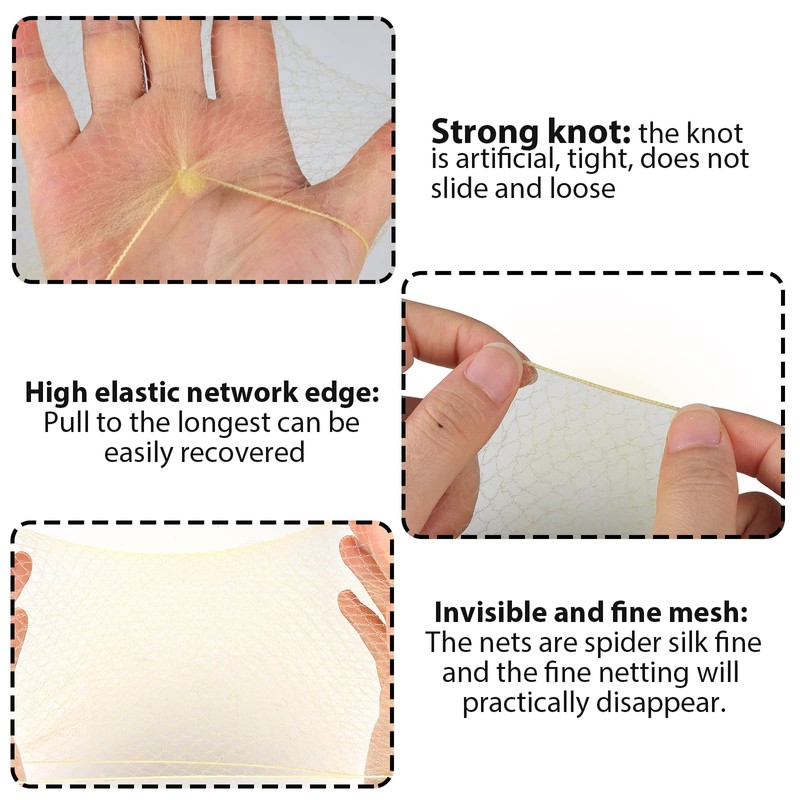 - Quality hair nets: The nets are spider silk fine, nylon elastic lace with hand-tying, light weight, strong, durable. Choose a color as close to your own hair color as possible and the fine netting will practically disappear.