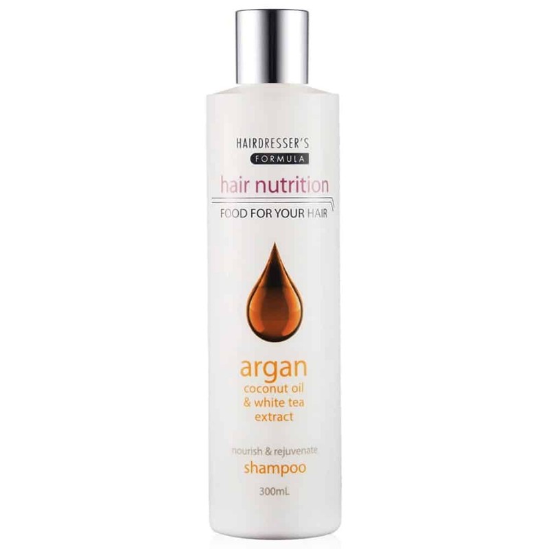 Hair Nutrition shampoo with Argan plus coconut oil and white tea extract nourishes and rejuvenates for beautiful, healthy hair.