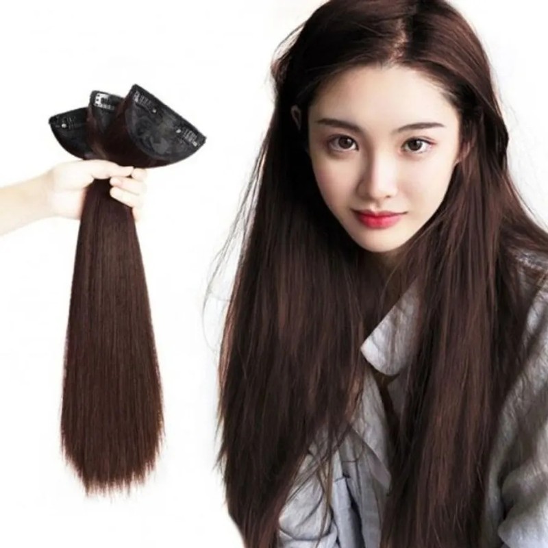 헤어 부분 빨간색 가발 피스 3개 똑딱이형 브라운 (WFHBQ5O)