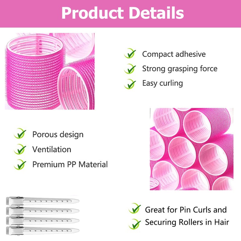 • 【Great Value Set】This hair curlers set comes with 12pcs jumbo hair rollers and 12pcs stainless steel duck teeth bows hair clips. Great hair roller set for long short fine thin hair.