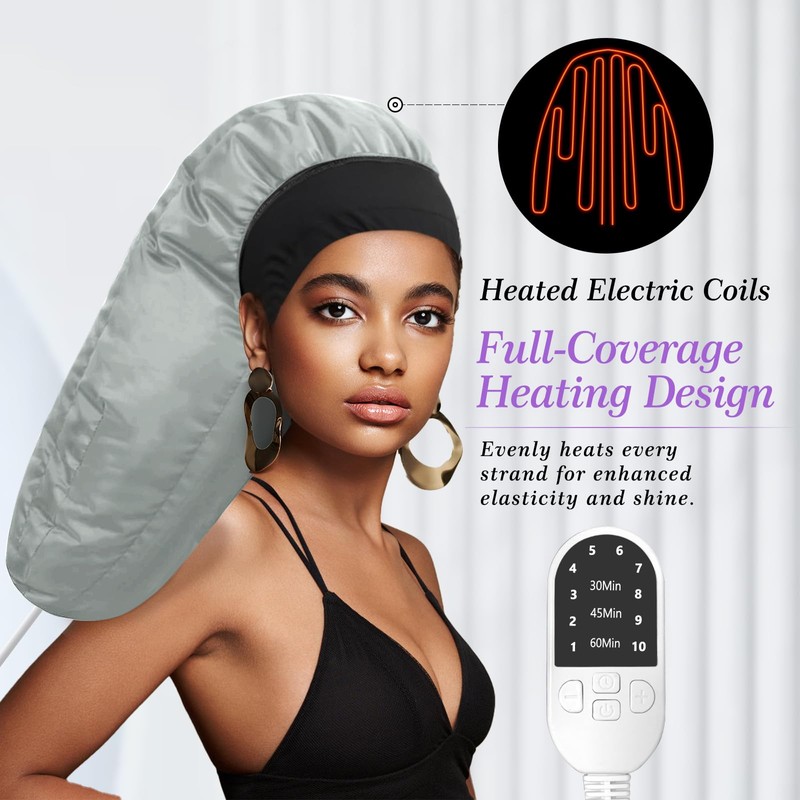 - 【10-Level Custom Heating + 3 Timer Modes】Tailor your treatment with 10 adjustable temperature settings (up to 150°F) and 3 timer options (30/45/60 mins). The built-in thermostat ensures safe, consistent heat distribution, while rapid heating technology lets you start treatments in minutes. Ideal for deep conditioning, oil masks, or heat styling.