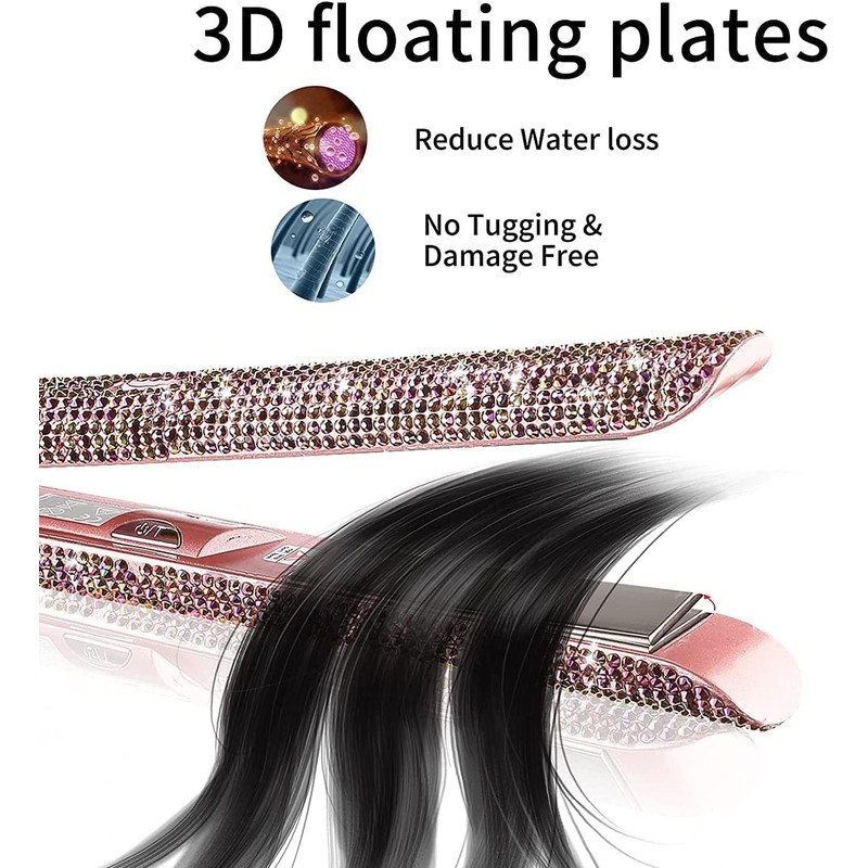 - 【Rhinestones Design】Amazing design with sparkling Rhinestones Crystal Diamond. Ceramic flat iron covered in over 2400pcs 1st rate of clearer glass rhinestone, fine hand-craft, not easily fall out, great gift for someone special.