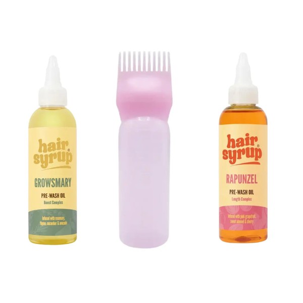 The Hair Syrup Rapunzel and Rosemary Duo is the ultimate combo for anyone serious about hair growth and getting that healthy, glossy mane. This power set includes two iconic hair oils: Hair Syrup Grows-Mary with rosemary and Hair Syrup Rapunzel packed with nourishing ingredients. And as a bonus, it comes with the Boozyshop Hair Oil Applicator – your new fave for an easy, mess-free oil routine!