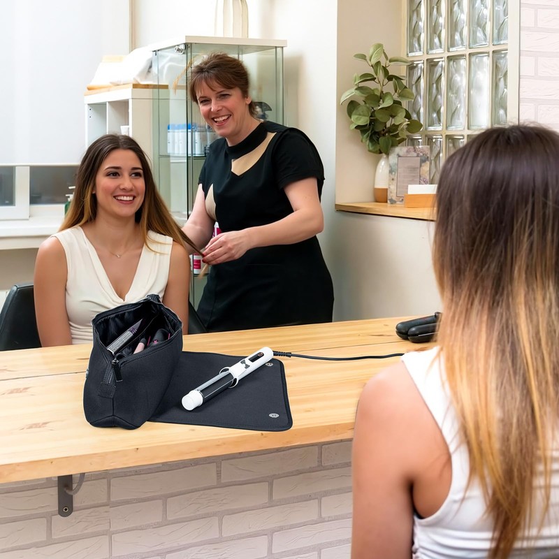 - Heat Resistant Mat: The pad of hair tool holder allows you to safely store hot styling tools immediately after use without waiting for cool-down. The thick, insulated padding protects your counters, vanity, and hotel surfaces from heat damage while saving you precious time during your beauty routine.