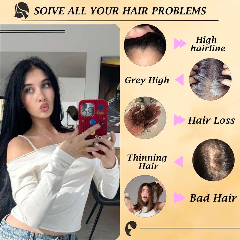 - Perfect for Multiple Hair Needs: Designed to boost volume, cover thinning areas or gray hair, shape the hairline, and frame the face, this hair topper is a versatile solution for various hair concerns. Unlike traditional hair extensions, it blends seamlessly to give you a natural, effortless look.